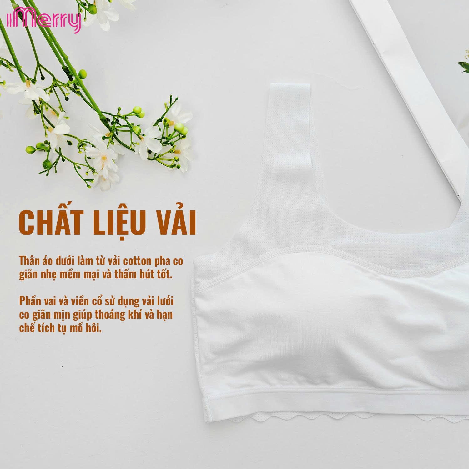 Cotton mềm – Thoáng mát – Dây bản to – Mút liền không xê dịch