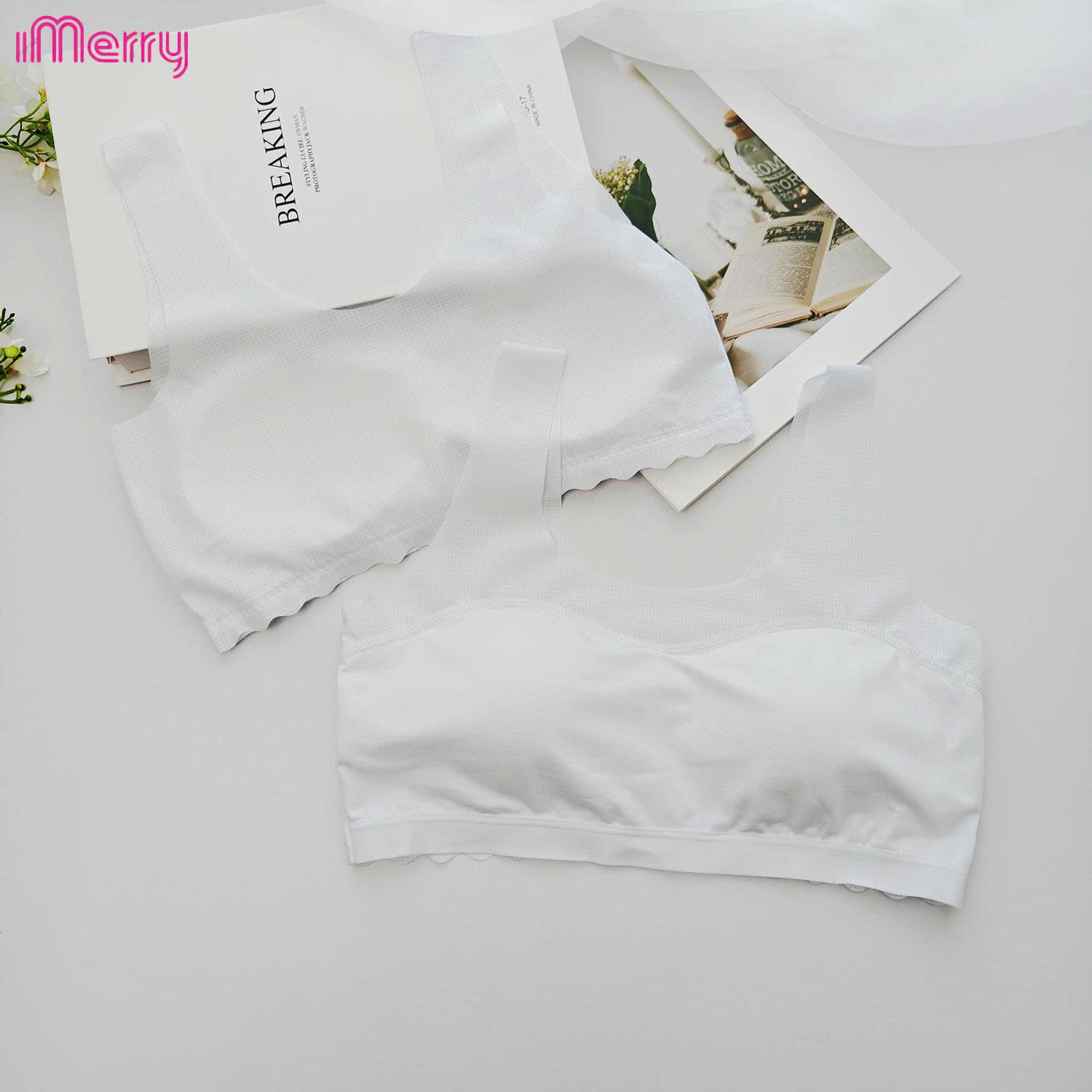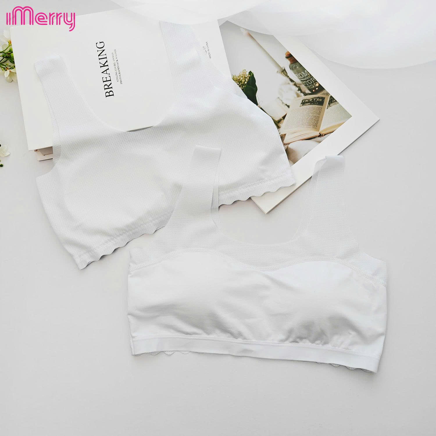 Áo lá học sinh iMerry cho bé gái từ 11 tới 17 tuổi chất cotton mềm thoáng mát dây bản to mút liền BRA6619