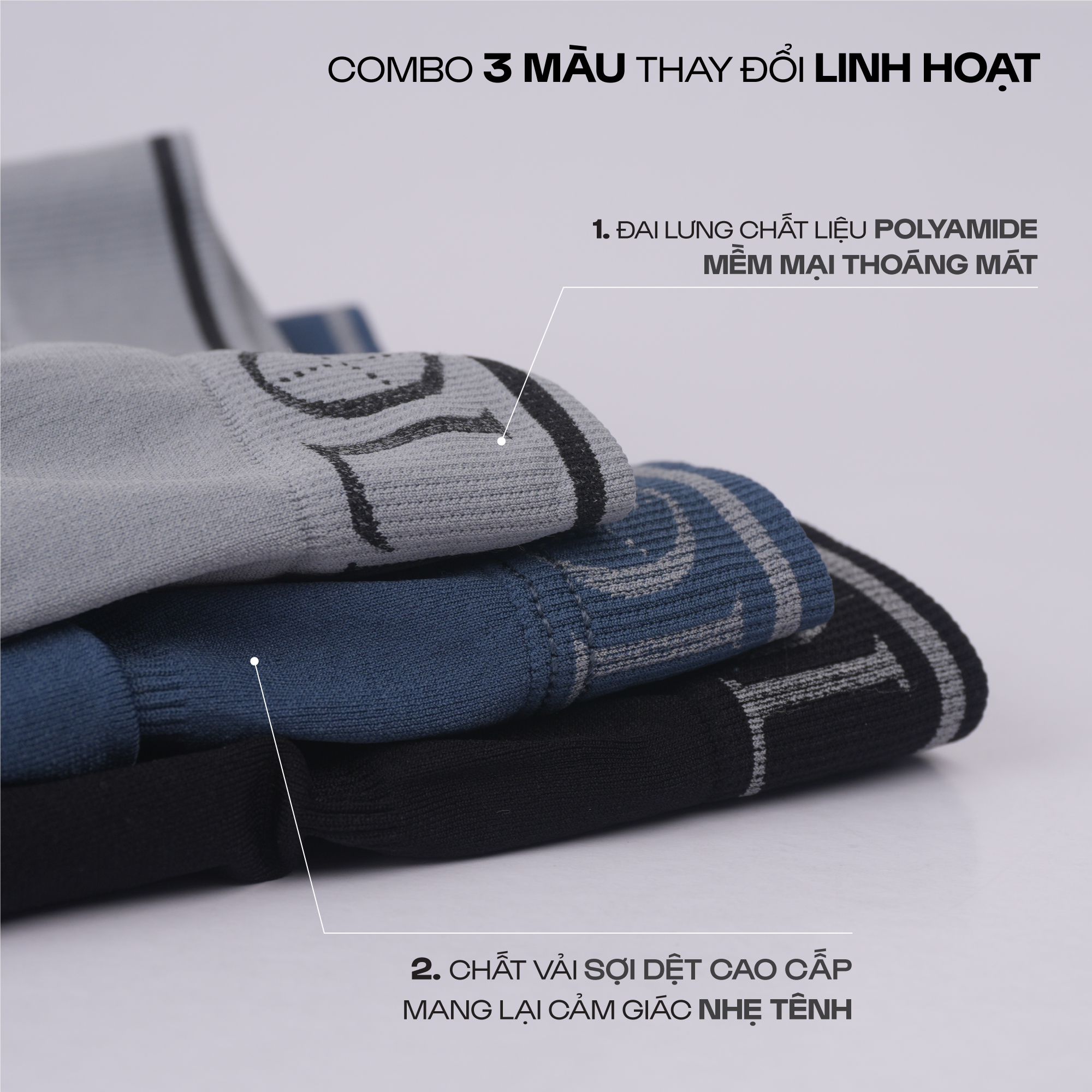 ⚡ Form dáng boxer ôm sát vừa phải: Giúp tôn dáng cơ thể nam giới, giữ form đẹp nhưng vẫn đảm bảo sự thoải mái.