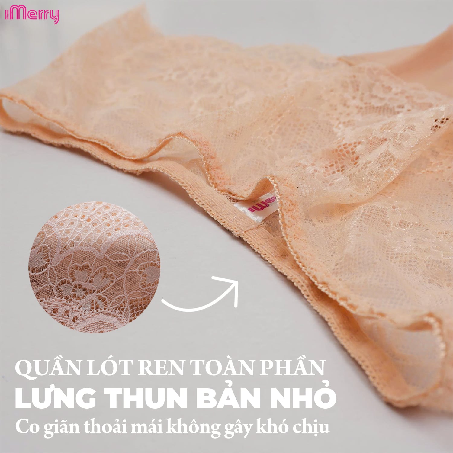 Sử dụng ren mềm mại, bề mặt mịn và có độ co giãn tự nhiên.
